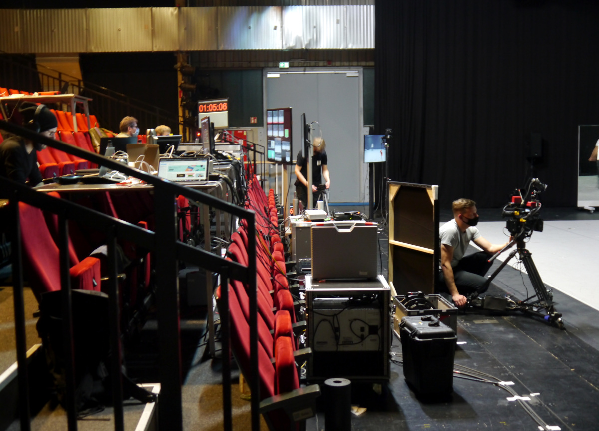 „Das Stück, in dem ursprünglich vor allem Kapitalismus kritisiert wurde, bekam erst in der letzten Zeit diese neue Richtung und wurde interaktiv“, berichtet Livia Gil, Tänzerin des Ensembles. „In den letzten zwei Wochen wurde es richtig lebendig, auf der Bühne, mit den technischen Elementen und vor der Kamera.“