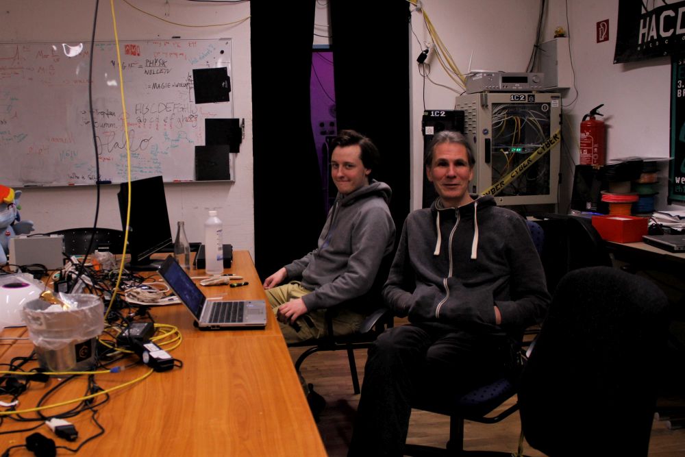 Die Räume des Chaos Computer Club Cologne in Ehrenfeld erinnern an einen Hackerfilm: Schummrige Beleuchtung, bunte LED´s, Kabelwirrwarr an der Decke und Poster an den Wänden, ein kleiner Tannenbaum, geschmückt mit Technikkrimskrams, Platinen und Festplatten liegen herum. Kreatives Chaos auf 170 m². Es gibt auch eine kleine Küche, im Kühlschrank stehen Malzbier und Thymian-Limonade.