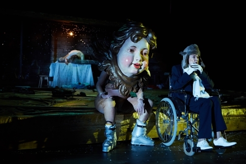 Stefan Bachmann fächert Jelineks Sprachspiel zunächst gekonnt in Après-Ski-Dialoge zwischen vier Sportlern (Lila Klammroth, Sabine Waibel, Simon Kirsch und Nikolay Sidorenko) auf. Sie kopulieren, als ob es um olympische Rekorde ginge. Ein Jesus mit Brüsten hängt plötzlich im Ski-Kreuzbalken und klagt gegenüber den missbrauchten Frauen ältere (Opfer-)Rechte ein. Jelineks Stück nutzt dafür Material aus Oskar Panizzas Religions-Satire „Das Liebeskonzil“ von 1895 und später noch einen Text über „Kopftrophäen“. Bachmann wählt einen „realistischen“ Zugang, zeigt Steilhang, Jesus am Kreuz oder den Kopf von Simon Kirsch, der aus einer Tischplatte lugt. Vor allem diesen zum Monolog ausgedünnten Text lässt Bachmann breit ausspielen. Doch letztlich bleibt diese Uraufführung merkwürdig unpolitisch, vertraut allein auf die Aussagekraft des Textes. Jelineks kalauernder Sprachexpress wird nicht mit mächtigen Bildern gestaut oder auch umgeleitet. Verstörend wirkt hier kaum etwas. Vielleicht ist der Abend mit zwei Stunden Spieldauer letztlich einfach zu kurz.