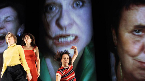 Kurz zuvor zeigen She She Pop im tanzhaus nrw als Koproduktion mit dem FFT ihr nicht mehr ganz neues Stück „Frühlingsopfer“. Es ist die logische Fortsetzung ihres vor Jahren höchst erfolgreichen Abends „Testament“, in dem die Truppe mit ihren Vätern über Erben, Tochterpflichten und väterliche Erwartungen verhandelte. Nun sind die Mütter dran. Dass Töchter zu Müttern spezielle Beziehungen pflegen, lässt sich schon daran ablesen, dass die ältere Generation nur als Video präsent ist – und dass die Kommentare der jüngeren Generation deutlich klarer ausfallen als gegenüber den Vätern. Es geht um das Opfer, das die Mütter gebracht haben: Für den Mann, für die Familie, für die Kinder, letztlich für die Gesellschaft. Eine große Arie des Verzichts, der in unserer individualistisch aufgemotzten Gesellschaft gerade nicht en vogue ist und der bei den AkteurInnen auf Widerspruch trifft. Und es geht um das Bild der Mutter, das von den Nachkommen kontrolliert, vielleicht auch auf die Opferrolle festgeschrieben werden muss. Johanna Freiburgs Geständnis, wie schwer sie das Bild der auf Partys tanzenden Mutter ertragen hat, spricht Bände. Anders als bei „Testament“ spielt diesmal der Tanz eine große Rolle. Igor Strawinskis titelgebende Komposition „Le sacre du printemps“ wird nicht nur vollständig eingespielt, sondern in eine Choreografie umgesetzt, die vielleicht in ihrem therapeutischen und gelegentlich rituellen Charakter auch den Raum eröffnet, um überhaupt übereinander sprechen zu können.