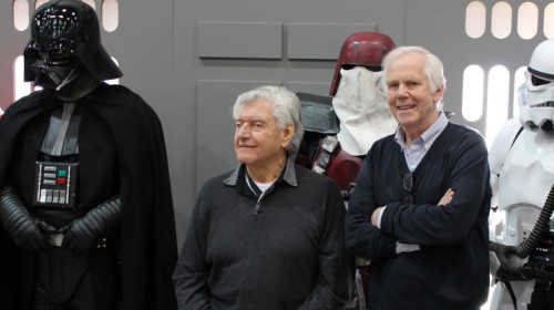 Ebenfalls vornehmlich als Schauspieler mit Masken in die Filmgeschichte eingegangen sind Dave Prowse („Darth Vader“) und Jeremy Bulloch („Boba Fett“), die in der Ursprungstrilogie von „Star Wars“ mitgewirkt hatten. Beim Q&A verriet der mittlerweile 77jährige Prowse, dass für ihn das Spielen unter einer Maske bei „Krieg der Sterne“ schon nichts Ungewöhnliches mehr war. „Seit den Anfängen meiner Karriere habe ich immer mal wieder Monster, Kreaturen oder ähnliches gespielt, deswegen hatte ich mich an das Spielen unter einer Maske schon lange gewöhnt.“ Die Darth-Vader-Maske sei ihm anfänglich allerdings viel zu groß gewesen. Selbst wenn er seinen Kopf nach links oder rechts drehte, blickte die Maske weiterhin geradeaus. Da George Lucas aber mit der Größe der Maske in Relation zu Prowses Körper absolut zufrieden war, wurde diese von innen so stark ausgestopft, dass sich die Bewegungen des Schauspielers direkt auf den schwarzen „Helm“ übertragen konnten. Sowohl Prowse als auch Bulloch sind gespannt auf die weiteren drei „Star Wars“-Filme, die nun unter dem Banner Disney realisiert werden sollen. Aber beide haben keinerlei Bedenken, dass George Lucas auch hier die kreative Kontrolle behalten und eine dritte Trilogie ganz in seinem Sinne in Auftrag geben wird.