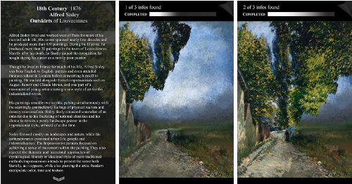Das ist den Ergebnissen der einzelnen Gruppen anzumerken, denn diese bedienen sich einer breiten Palette von Spielprinzipien. Am Beispiel von Gemälden Alfred Sisleys etwa hatte eine Gruppe ihr Spiel „Painter's Experience“ entwickelt, dass den Museumsbesucher in die Rolle des Malers versetzt, in dem er auf einer digitalen Leinwand bekannte Werke nachmalen und in gewissem Rahmen auch animieren kann. Eine weitere Gruppe bedient sich für ihr Spiel „Kunstr“ dem Prinzip einer Dating-App, mit der der Besucher in „Dialog“ mit den Kunstwerken treten kann: Ein Chatbot übernimmt die Rolle der Bilder und vermittelt im Gespräch Wissenswertes zum jeweiligen Gemälde. „Picognize“ wiederum entwarf eine Art Quizduell, bei der die Kontrahenten Fragen zu Gemälden beantworten sollen, „deren Antworten immer im Bild selbst zu finden sein sollen – nach dem Prinzip „Lernen durch Sehen“, so einer der Studierenden. Ein anderes Projekt überträgt das Prinzip von Quartett-Karten auf die Kunstwelt und setzt dieses sowohl in einer digitalen, als auch einer analogen Variante mit einem eigens entworfenen Satz Karten um. Auch ein klassisches Point-and-Click-Adventure nach dem Vorbild des Klassikers „Monkey Island“ findet sich unter den Ergebnissen: Hier entwickeln die Figuren in den Bildern ein Eigenleben und liefern sich witzige Wortgefechte. „Der Spieler lacht darüber und merkt derweil gar nicht, dass er etwas Neues lernt“, so einer der Entwickler.