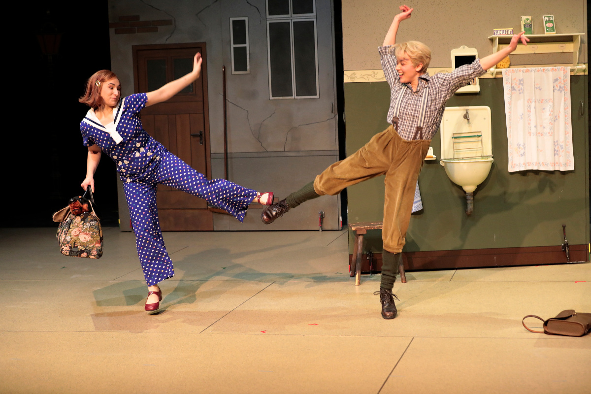 Die Kinderopern-Chefin Brigitta Gillessen hat „Pünktchen und Anton“ mit viel Liebe zum Detail inszeniert, wenn auch leider – gezwungenermaßen – auf Abstand. Das Bühnenbild von Jens Kilian besteht aus mobilen Bühnenelementen, die teils von den Sängern selber bewegt werden. Je nach Seite der Elemente befindet sich das Publikum im feinen Hause Pogge, der schlichten Wohnung von Anton und Frau Gast oder aber mit Kindermädchen im Park. Auch bleibt Gillessen in der Entstehungszeit von Kästners Geschichte und versucht nicht, diese in die Gegenwart zu holen.