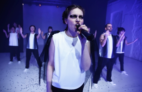 Der sarkastische Lehrsatz wird in „Terrorist:innen“ nach bewährtem (Schultheater-) Muster in fließender Form als Anhäufung von Szenen zu verschiedensten tagespolitischen Themen angewandt. Das erfüllt den Auftrag der Kunst als Chance zur konstruktiven Gesellschaftskritik, die mitunter stakkatoartige Abwicklung der Texte offenbart sich aber noch als Versuch, Lautstärke und Tempo zu variieren. Da es sich bei den Darsteller:innen nicht um Profis handelt, darf hier jedoch nicht der gleiche Maßstab gelten. Vielmehr ist hervorzuheben, dass sich die jungen Menschen nach Arbeitsschluss für eine kreative Beschäftigung entschieden haben, anstatt zuhause über den Zustand der Welt zu lamentieren. Das Regieduo Isabella Kolb und Asim Odobašić und Choreografin Tatiana Feldmann setzen in der Produktion zudem zielsicher auf chorisches Theater. Damit treffen sie einen Nerv, denn die 200 gecasteten Bewerber:innen bündeln im Kollektiv ihre Stärken in Artikulation und Tanz, während individuelle darstellerische Schwächen nicht auffallen.