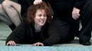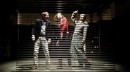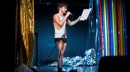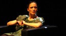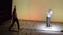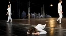 Max hechtet mit einem Sprung auf die Bühne und rutscht bäuchlings über den weißen Boden. Sportiv und energisch in den Bewegungen versucht er, das Wiedersehen mit zwei Frauen auszuhalten, denen er als Mann nicht gewachsen ist.