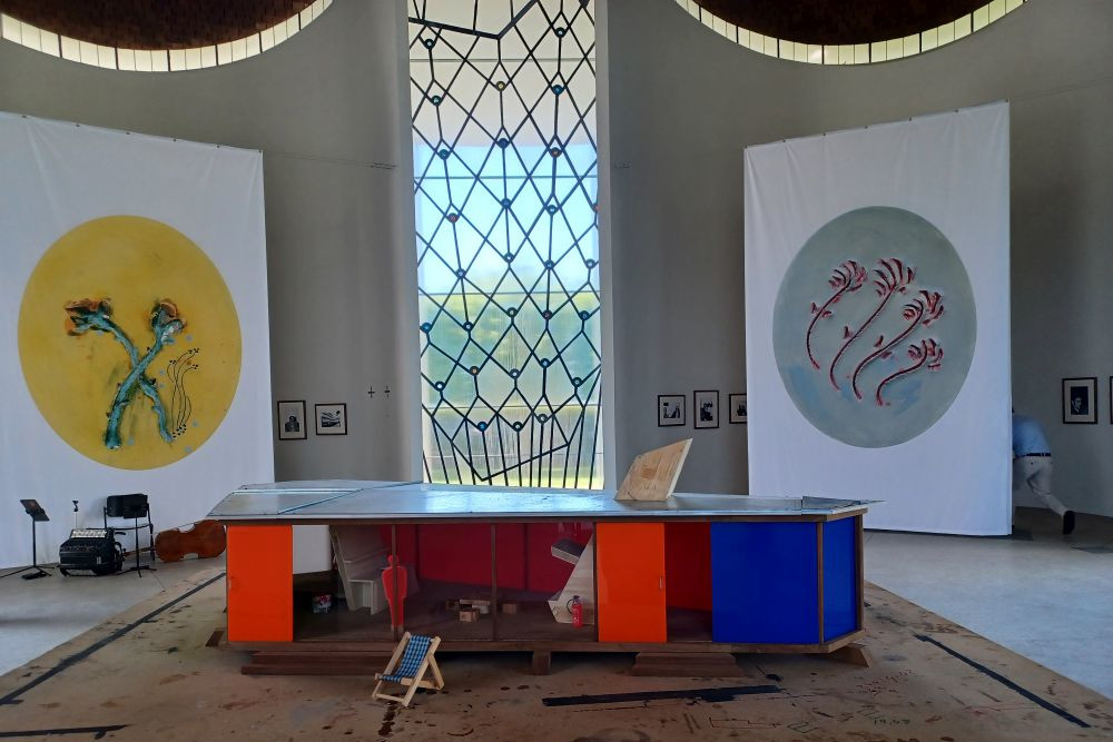 Das, was in der großen Ausstellung der Pinault Collection in Venedig zu kurz kommt, ergänzt nun die kleine, wirklich überraschende Ausstellung von Thomas Schütte in der Böhm Chapel. Sie zeigt seine architektonischen Modelle, Figuren, Plastiken als Urnen und eine ganz frühe, neu abgezogene Fotoserie von Bewohnern im Altenheim, die direkt auf die Emotionen der plastischen Figuren des weltberühmten Künstlers weist. Die Böhm Chapel in der Hans-Böckler-Straße, 1954-56 errichtet vom Architekten Gottfried Böhm, wurde von der Jablonka Foundation 2010 erworben. Ab und an finden hier Ausstellungen statt, nun also mit Thomas Schütte.