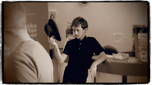 Der in Argentinien und in Europa gleichermaßen gefragte Biscayart („Tief in den Wäldern“, „Glue“, „Je suis à toi“) erklärte mir nach dem Film auf Englisch – er spricht kaum Deutsch –, dass im Film Tobias Jundt selbst für ihn singe, der eine sehr ähnliche Stimme habe. Es sei Mitte 2014 sein erster Dreh in Deutschland gewesen, in diesem Jahr habe er aber in einen zweitem Film hier mitgespielt, Maria Schraders „Vor der Morgenröte“.