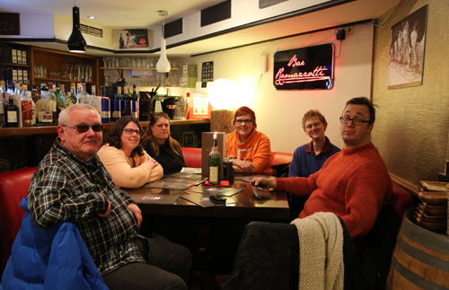 Die Veranstaltung ist neben der „Tanz dich fit“-Gruppe das einzige Angebot der Diakonie, welches für alle und ohne Voranmeldung offen ist. Viele kommen regelmäßig, aber es gibt immer auch neue Gesichter. Vroni ist schon lange dabei und schätzt es, den Feierabend in Gemeinschaft ausklingen zu lassen. Mit einem verschmitzten Lächeln und einem amtlichen Weizen in der Hand sagt sie, dass es auch darum geht, sich gegenseitig auf die Schippe zu nehmen. Humor ist ein wichtiger Faktor. Wer hierher kommt, sollte Ironie verstehen, damit man zusammen lachen kann, denn der Alltag kann schon hart genug sein. Vroni ist schon lange auf Wohnungssuche. Frank gibt an ein Typ zu sein, der nicht gerne alleine ist. „Wenn man aber alleine ist, kann man hierher kommen und nette Menschen treffen und vielleicht auch Freunde finden. Das ist ja alles noch ausbaufähig.“ Denn bisher sind außer den BetreuerInnen nur selten Menschen ohne Behinderung dabei. „Ja, Inklusion!“, tönt es von gegenüber. Katharina schaltet sich ein und sagt: „Das ist doch blöd, dass immer nur Behinderte oder Nicht-Behinderte unter sich sind. Dann entfremdet man sich doch als Menschen!“ Also raus aus der eigenen Schublade. Sich an einen Tisch setzen, sich anschauen, zuhören und Berührungsängste überwinden. Berührungsängste sind ja etwas Normales. Nur sollte man sich ihrer bewusst werden und sie aktiv überwinden.