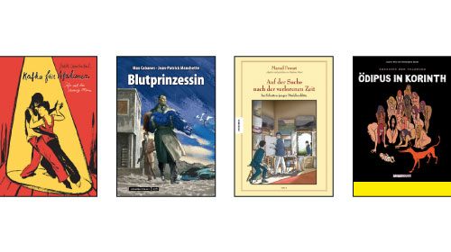 Stéphane Heuet hat das Wagnis einer Marcel Proust-Adaption auf sich genommen. Auf Französisch gibt es bislang fünf Bände, ins Deutsche wurden bisher drei übersetzt. Nach „Combray“ erschienen die zwei Bände zu „Im Schatten junger Mädchenblüte“ des Opus Magnum „AufderSuchenachderverlorenenZeit“. Heuets Ligne Claire-Stil passt kongenial zu den schwärmerischen Beobachtungen des jungen Helden und sind eine Augenweide. Textlich gelingt ihm die Mischung aus Sprechblasen-Dialog, kurzen Erzähltafeln und reinen Textblöcken, die ebenfalls als Panels gerahmt sind. Es ist zu hoffen, dass die Serie trotz des viel zu frühen Todes des bisherigen Übersetzers Kai Wilksen bald fortgeführt wird (Knesebeck). Eine Supergroup: JoannSfar und ChristopheBlain lassen einen Hund durchs mythische Griechenland dackeln. „SokratesderHalbhund“ erzählt vom Begleiter des „Herakles“, den wir im ersten Band kennenlernen. Im zweiten und dritten Band folgen Geschichten um „Odysseus“ und „Ödipus“. Der philosophierende Hund Sokrates reflektiert deren Handeln, auch wenn er mitunter ein wenig an den treu-doofen Rantanplan erinnert. Blain sorgt für die Zeichnungen, Sfar für die brachialen Wendungen der Geschichte (Reprodukt).