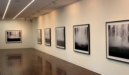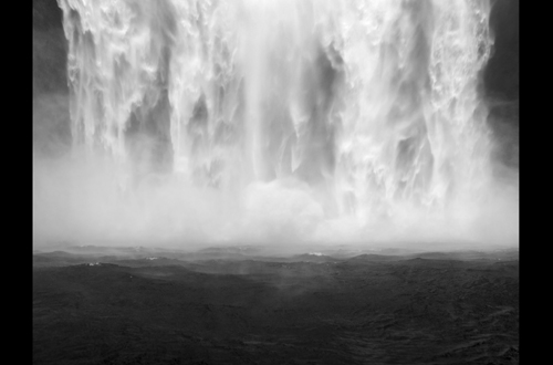 Fast denkt man, das Rauschen des imposanten Wasserfalls „Skogar“ hier im Forum für Fotografie hören zu können. Der Ausstellungsraum ist gefüllt mit großformatigen Schwarzweiß-Fotografien, auf denen riesige Wassermassen scheinbar ins Nirgendwo stürzen. Als Betrachter fühlt man sich gegen die abgebildete Naturgewalt klein und hilflos.
