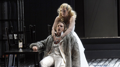 Das Theater Hagen hat Vanessa nun wieder auf die Bühne gebracht. Sie fügt sich ein in eine lose Folge amerikanischer Opern, die einen roten Faden der Intendanz von Norbert Hilchenbach seit 2007 bilden. Regisseur Roman Hovenbitzer hat den Dreiakter in der gestrafften Fassung von 1964 mit ausgiebigem Einsatz von Videoeinspielungen (Film: Volker Köster) inszeniert. Herausgekommen ist ein atmosphärisch äußerst dicht gewobenes Psychodrama, das zu fesseln vermag und auch geschickt mit den Gegebenheiten operiert. Etwa, dass sich die australische Gastsopranistin Katrina Sheppeard in der Titelrolle und Kristine Funkhauser als Erika im Timbre recht ähnlich sind. Die Regie macht aus der eigentlichen Nichte Erika eine Tochter und lässt sie der Mutter auch äußerlich gleichen. Das ist auch dramaturgisch geschickt, wenngleich man sich musikalisch vielleicht etwas mehr dramatisches Gewicht in der Vanessa-Partie wünschen würde.