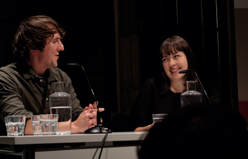 Am Sonntagabend sind von jedem Projekt nur einige Seiten zu hören. Inhalt und Aufbau des Romans wird nur kurz umrissen, der Text steht im Vordergrund, und damit eher der Sound. Die Unterschiede der Stile werden deutlich wie auch der Autoren. Gleich zu Beginn fasziniert ein sehr kunstvoller Beginn des Romans „EmsDollart“, der zwei Jungen und eine alte Frau in ostfriesischer Natur beschreibt. Es öffnet sich eine Erzählwelt durch genaue Landschaftsbeschreibung wie durch stückweises Offenlegen der unklaren Beziehung zwischen den Figuren. Autor Jan-Okke Baumbach arbeitet als Wissenschaftler in Newcastle, von wo er für die Kölner Schmiede anreiste. An drei Wochenenden traf sich die Gruppe insgesamt, das vergangene endete dann in der Lesung. Dazwischen war Zeit für die Weiterentwicklung der Texte.