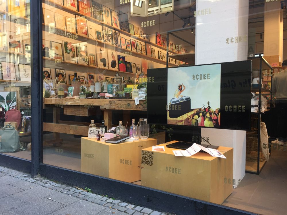 Integriert in die gefüllten Schaufenster manch kleiner Geschäfte fallen die Bildschirme, auf denen die Bewegtbilder in Richtung Gehweg abgespielt werden, tagsüber nicht überall sofort ins Auge – umso mehr macht ihr Leuchten aber in der Dunkelheit auf sie aufmerksam. Eine Woche lang laufen sie rund um die Uhr und laden zu Open Air-Erkundungstouren durch die Straßen rund um den Brüsseler Platz ein.