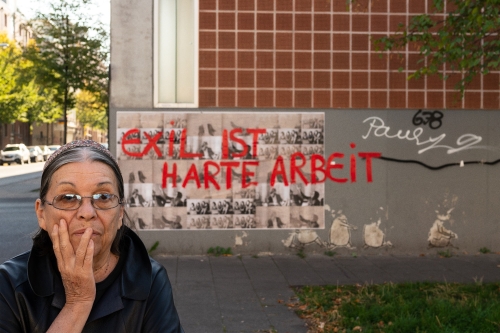 Yalter hat genauso Videos aufgenommen, in denen sie türkische Immigrantenfamilien zu ihren Lebensbedingungen befragt – die ersten Videos einer Künstlerin in Paris, ergänzt Rita Kersting, die die Ausstellung für das Museum Ludwig kuratiert hat. Und Yalter hat die Monitore für „Turkish Immigrants“ (1977) zur Videoskulptur angeordnet. In der Erkenntnis, wie aktuell die Themen bis heute sind, hat sie zudem 2012 eine Plakataktion im Stadtraum gestartet und einzelne der Filmstills in Reihen angeordnet und darüber in Rot in der jeweiligen Landessprache der hier lebenden Immigranten geschrieben: „Exil ist harte Arbeit“. In verschiedenen Stadtteilen von Köln gibt es diese Plakatwand zu entdecken, als Guerilla-Projekt ist sie an diejenigen gerichtet, von denen sie handelt: Nil Yalter bleibt im Dialog mit der Lebenswirklichkeit.