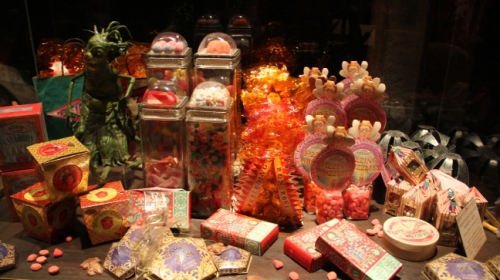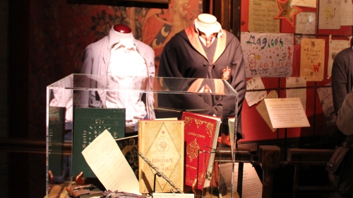 Nach dieser Hürde erschließt sich einem nun die Ausstellung, die in Form eines Rundganges von Kulisse zu Kulisse in die Themenwelten der Filme einführt. Der Gryffindor Gemeinschaftsraum, der wie im Film-Vorbild von der lebensgroßen fetten Dame bewacht wird, ist mit allen erdenklichen Requisiten ausstaffiert. Ausgestellt sind die Originalgenstände von Harry Potter, Hermine Granger und Ron Weasly wie die Pullover mit Monogramm, Rons Heuler, den er als Tadel von seiner Mutter geschickt bekommt oder Harrys Zauberstab aus Stechpalmenholz und einem Kern aus Phönixfeder, die aus dem Schwanz von Fawkes dem Phoenix stammt. Echte Harry Potter Fans brauchen für dieses Wissen natürlich keinerlei Erklärungen, für alle anderen gibt es Informationstafeln, die kindgerechte Erklärungen liefern.