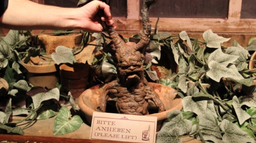 Lohnenswert ist darüber hinaus der Audio-Guide, denn die Hintergrundinfos, die einem da ins Ohr geflüstert werden, sind äußerst interessant. Die Kostümbilder erzählen beispielweise, was sie sich bei der Auswahl der Kostüme der Darsteller für Gedanken gemacht haben – Kostüm und Requisiten erschließen sich dem Besucher so auf eine ganz andere Art und Weise, wenn er zum beispielsweise erfährt, dass für Voldemorts Kostüm Seide als Stoff gewählt wurde, um seine Wiederauferstehung zu unterstreichen oder welche Herstellungsprozesse die kunstvoll gefertigten Masken seiner Todesser durchliefen.
