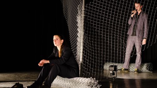 Da bittet eine Performerin die Zuschauer, Badeanzüge auszusuchen, die sie sich kurz überstreift. Ihre fünf Kollegen tun es ihr nach. Dann fällt der Irrsinnssatz „Der Badeanzug ist Inbegriff der verwalteten Welt“. Man denkt, es geht um Voyeurismus, um Körper und Repräsentation, um Projektion, doch mehr als dramaturgischer Wirrwarr. Die Performer zappeln ein wenig herum und sprechen später von Choreographie. Dann halten plötzlich die Konju nktive eines imaginierten Lebens Einzug: Wunschwelten des „wäre“ und „würde“. Schließlich strandet man in totaler Selbstbespiegelung: Das Ich und seine Entfaltung auf der Bühne, Theater und Ich als Ware etc. cobratheater.cobra vollbringt das Kunststück, nur noch von sich zu sprechen und kaum verallgemeinerbare Erfahrungen auf die Bühne zu bringen. So viel Narzissmus war lange nicht.