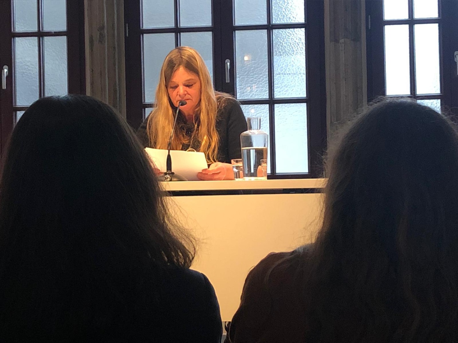Der Rundgang endete am Literaturhaus, wo Bettina Fischer durch den Abend leitete. Der Gedanke hinter der Veranstaltung sei, so Fischer, das Scheinwerferlicht auf Autorinnen zu richten, die in Köln gelebt haben, die aus Köln kommen, beziehungsweise in Köln arbeiten. Auch in der Literatur seien Frauen oft nicht genug wahrgenommen worden, und nach wie vor sei die Sichtbarkeit von Frauen in Literatur und Medien oft geringer als die ihrer schreibenden Kollegen.