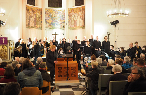Die Stücke widmeten sich vor allem dem Thema Krieg und Frieden und stammten von Komponisten aus der Zeit des Dreißigjährigen Krieges. Sie erzählen von großer Not und noch mehr von der Hoffnung auf ein besseres Leben nach dem Tod. Das Programmheft in den Händen, erscheint es zäh, dem Text zu der Musik zu folgen, da er so weit weg erscheint von Kölner Lebensrealitäten heute. „Es ist allhier ein Jammertal, Angst, Not und Trübsal überall, des Bleibens ist ein kleine Zeit, voller Mühseligkeit, und wers bedenkt, ist immer im Streit”, sagt Schütz etwa in den „Musikalischen Exequien“. Die Texte der Stücke zeichnen einerseits düstere und schwere Bilder, aber erzählen auch von der Hoffnung auf Gottes Beistand durch den Glauben. Und jetzt die große Überraschung: Die Musik ist gar kein Sog in die Tiefe, sondern sie predigt, oder besser, sie verkörpert die pure Zuversicht darauf, dass sich das Hoffen auf das Jenseits auch wirklich lohnt. Vielleicht konnte gerade in diesem damaligen Jammertal die Musik so tröstend und überzeugt klingen. Für den musikalischen Leiter Joachim Diessner ist das „die schönste Musik“, die er sich vorstellen könne.
