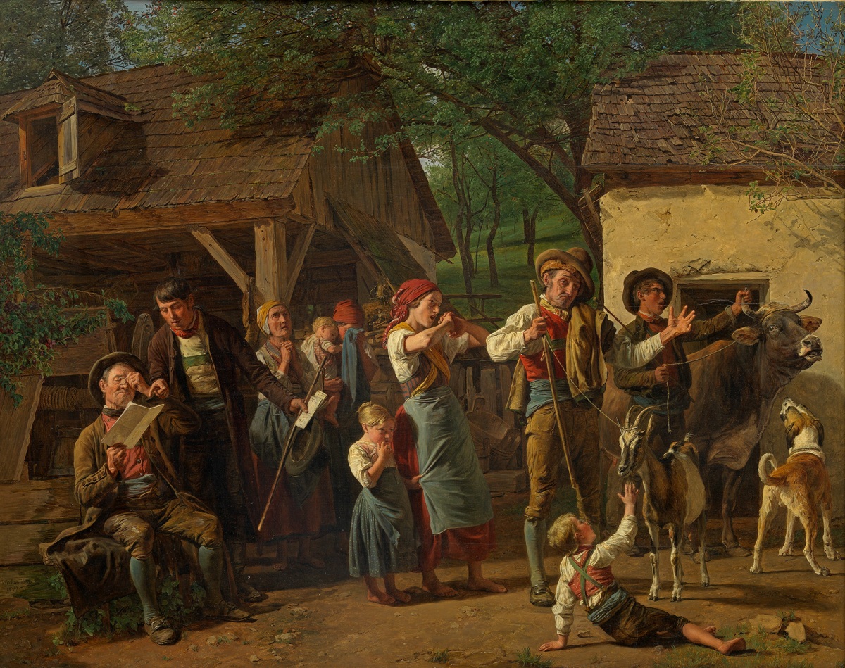 Die Ausstellung ist ein im positiven Sinne Sammelsurium an Kunstobjekten, Geschichtsanekdoten und zum Teil skurrilen Alltagsgegenständen, die Lebenswelten gestern und heute dokumentieren, immer unter dem Gesichtspunkt einer fortschreitenden Evolution eines Systems, an dessen Ende nur der Kollaps stehen muss, um es wieder neu zu starten. Natürlich gibt es auch Errungenschaften wie billige Massenware fürs Volk, standardisierte Küchenmöbel für den Ort, der einer der preiswerten Grundpfeiler des Kapitalismus wurde. Immer wieder durchbrechen kritische Interventionen den Parcours durch die roten Stellagen. Beim Film „Landraub“ (Österreich, 2015) von Kurt Langbein fällt mir sofort die schicke Firma Benetton und Argentinien ein, bei Ferdinand Georg Waldmüllers Drama in Öl „Die Pfändung“ (1847) die Auswirkungen der heutigen Pandemie auf den Immobilienmarkt.