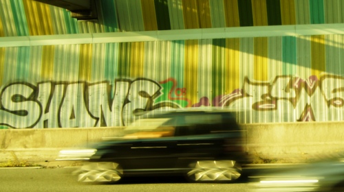 Das die landeseigene NRW.Bank, der die Gesellschaft gehört, mit Ihren Steuergeldern einst teure Deko fürs Casino eingekauft hat? Hoffen wir, dass der Deal nicht auch noch in die Hose geht.Letzte Woche dann der finale Schock auf dem Weg ins Rheinland. Auf der A43, kurz vor dem Wuppertaler Kreuz haben Kunstkenner wieder eine Lärmschutzwand bepinselt. Mit zwei schwarzrotgoldenen Streifen, geschätzte 40 Meter, oder mehr? Dazwischen unser Landeswappen. Mehr konnte ich beim ersten Vorbeirauschen nicht erkennen. Wenn jemals die Rückeroberung des öffentlichen Raums besonders notwendig war, dann hier. Derartige deutschnationale Vergewaltigungen des Geistes braucht kein Verkehrsteilnehmer. Und andere Menschen auch nicht.