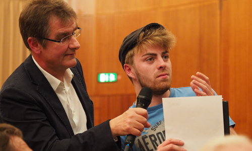 Mehmet Daimagüler war gekommen, weil die „Biedermänner“ zu entlarven seien, die wohlgesittet und mit „bürgerlichem Habitus“ daherkämen. Er glaubte nicht an Einzelfälle auf Orts- und Länderebene, sondern bezeichnete das im Mai verabschiedete AfD-Parteiprogramm als einen „einzigen Anschlag auf unsere Verfassungsordnung“. Adam spreche in hohen Tönen vom Grundgesetz, wolle aber eigentlich eine „exklusive“ Verfassung haben, nur „für Leute, die Sie als deutsch empfinden“. So habe Gauland im Rahmen seiner Boateng-Äußerung mit Unterstützung von Poggenburg und von „Miniatur-Göbbels“ Höcke gesagt, nur weil jemand in Deutschland geboren sei und einen deutschen Pass habe, sei er noch lange kein Deutscher. „Das ist die Rückkehr zu den Nürnberger Rassegesetzen.“