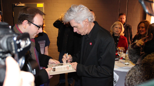 Unter den zahlreichen Gästen befanden sich auch die „Switch Reloaded“-Komiker Peter Nottmeier und Petra Nadolny. Letztere merkte auf dem Roten Teppich an, dass sie bislang kaum Vampirfilme kenne und natürlich wegen Jim Jarmusch hier sei. Ihr Lieblingsfilm des Regisseurs wäre „Coffee and Cigarettes“, jener „wirklich sehr bekannte und sehr atmosphärische Film von ihm“. Für den BAP-Frontmann Wolfgang Niedeken gibt es direkt einige Lieblingsfilme von Jarmusch. Er offenbarte beim Sektempfang im Foyer des Kinos, dass er zusammen mit seinem Sohn Robin am 11. September 2001 Jarmuschs „Year of the Horse“ im Kino gesehen habe – das sie aufgrund der aktuellen und mittlerweile historischen Vorkommnisse an diesem Tag wohl ganz für sich alleine hatten. Robin war nun auch als Begleitung seines Vaters bei der Premiere von „Only Lovers Left Alive“ mit dabei. Für das Kölner Urgestein ist die Tatsache der Erstaufführung des Films in seiner Heimatstadt eine außergewöhnliche und lobenswerte Erfahrung. „Ich finde das großartig! Als die Nachricht kam, dass ich bei der Premiere dabei sein darf, habe ich mich weggefreut. Es kommen ja einige Einladungen bei mir an, aber nicht über alle freue ich mich. Über diese habe ich mich sehr gefreut!“ Jim Jarmusch selbst zeigte sich vor dem Film im Foyer äußerst wortkarg und stand nur einigen wenigen Journalisten für Fragen zur Verfügung. Gleichwohl posierte er vor der Fotowand mit einigen der deutschen Koproduzenten, mit Film- und Medienstiftung-NRW-Geschäftsführerin Petra Müller oder der Kölner Bürgermeisterin Angela Spizig und schrieb für seine Fans das eine oder andere Autogramm.