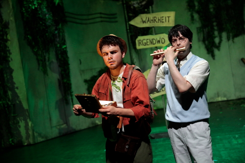 Tamino ist der sehr stimmschöne und spielfreudige William Goforth im Harry-Potter-Look, Katrin Zukowski schießt klar den Vogel ab mit ihrer Rolle als Pamina, sowohl stimmlich wie auch darstellerisch. Einfach wunderbar diese Katrin. Und der Russe Anton Kuzenok begeistert erneut mit seinem flexiblen Tenor als Monastatos, ebenfalls mit einem geheimnisvollen Technikhelm. Genannt werden muss noch die Isländerin Arnheidur Eiríksdóttir mit entzückendem Mezzo als dritte Dame.