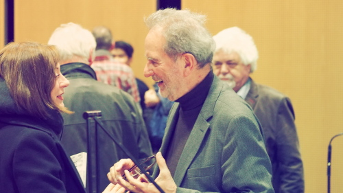 Und sein Rat an die Studenten? Nun sprach er etwas zögerlich und tastend: „Es gibt ja eine Frage, die uns das ganze Leben begleiten muss, und das ist die Frage: Warum machen wir Filme? Darauf muss jeder selbst eine Antwort finden. Mein Ratschlag ist, nie aufzuhören, sich diese Frage zu stellen. Zu jedem Lebensalter wird man eine andere Antwort haben. Wenn man gerade angefangen hat, zu studieren, hat man vielleicht… Träume, die man hinterfragen sollte. Bei Träumen ist ja immer wichtig zu wissen, wo man sie her hat. Und das, meine ich, könnte ein Ansatz sein.“
