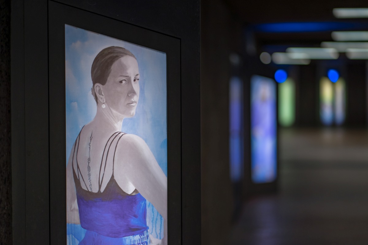Die Kölner Künstlerin Zrinka Budimlija hat die nördliche KVB-Passage am Ebertplatz in eine öffentliche Ausstellung verwandelt. Leuchtkörper im Gang dienen als Bilderrahmen für die Kunstwerke, die sich den Legenden rund um die vier Kirchen um den Ebertplatz herum widmen.