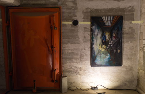 Diskontinuierlich, nahezu fragmentarisch gestaltete sich die Erkundung des Bunkers in der Körnerstraße am vergangenen Wochenende. Ein Raumplan half zwar bei der Zuordnung der 22 Werke, doch klare Orientierung konnte auch dieser nicht verschaffen. Das Event ließ sich nur auf subjektiven Routen erschließen, passend zu dem bis zuletzt geheim gehaltenen Thema System und Chaos, Dystopie und Utopie. Auf ebendiese offene Spannweite wurde auch in der Auswahl der Ausstellungsstücke Wert gelegt. Videoprojektion reihte sich an Klanginstallation, Gemälde an Fotografie, Skulptur an Performatives. Darüber hinaus gab es ein Kurzfilmprogramm zu sehen und des Abends Livemusik auf die Ohren.